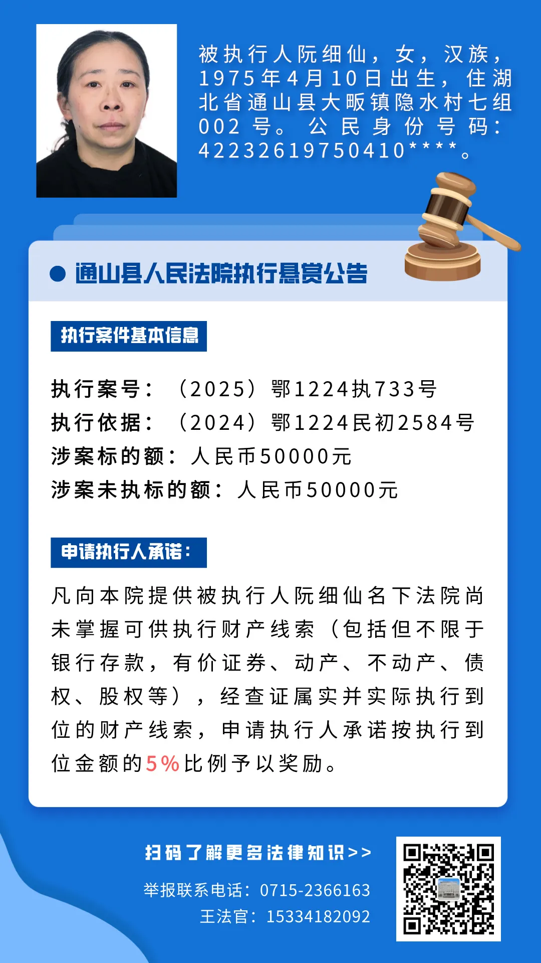 通山县人民法院执行悬赏公告