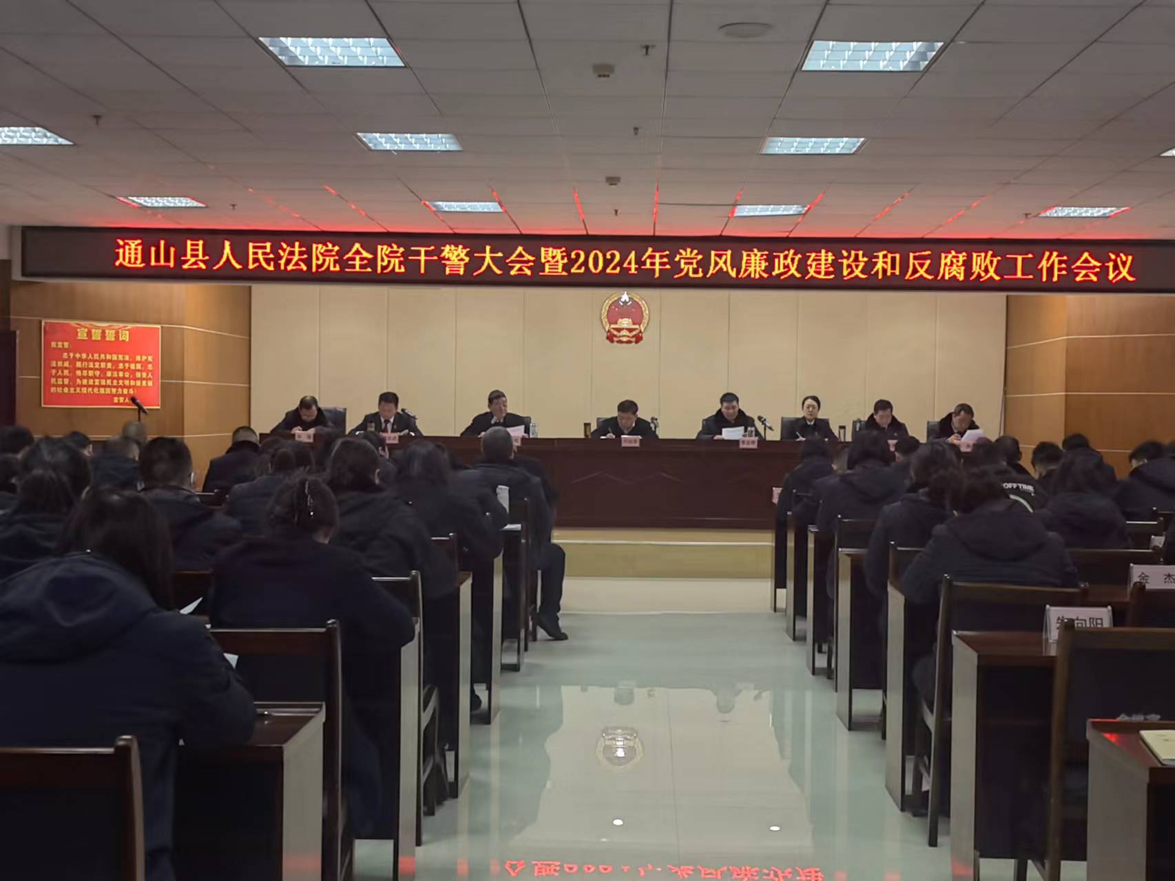 为总结2023年工作,分析形势任务,研究部署2024年工作,3月4日上午,通山法院召开全院干警大会暨2024年党风廉政建设和反腐败工作会议,会议坚持以习近平新时代中国特色社会主义思想为指导,学习贯彻习近平法治思想和习近平总书记对政法工作的重要指示精神,贯彻落实中央政法工作会议、省委政法工作会议和全国高级法院院长会议、全省法院院长会议、全市法院院长会议等精神。党组书记、院长邱剑军到会并讲话,会议由党组成员、副院长李志明主持,全体干警参会。