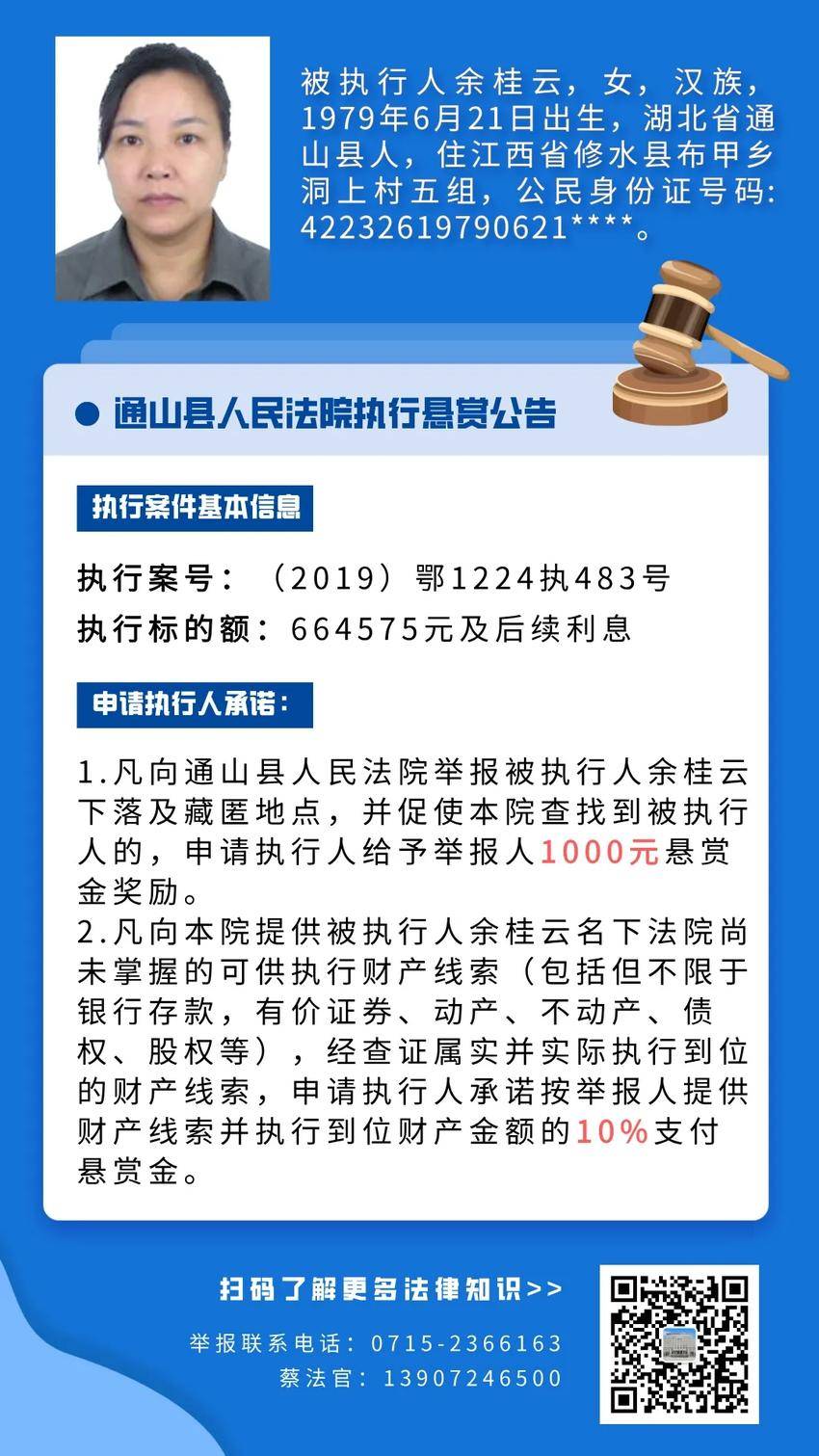 为切实保护债权人的合法权益,打击被执行人规避执行行为,促进社会信用机制的建立,依照《中华人民共和国民事诉讼法》第二百五十五条、《最高人民法院关于民事执行中财产调查若干问题的规定》第二十一条、第二十二条之规定,本院依申请执行人申请发布悬赏公告,对被执行人下落线索提供者予以奖励,如提供的线索本院没有掌握或者申请执行人没有提供,经查证属实并据已实际控制被执行人的,本院将依照申请执行人的承诺给举报人奖励。特发布执行悬赏公告如下: