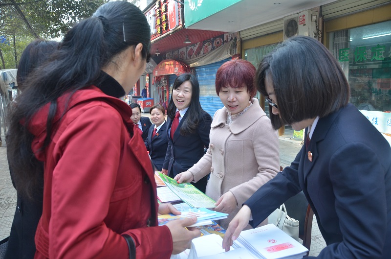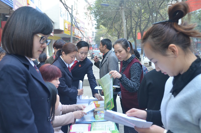 在兴业街,《反对家庭暴力,创建平安家庭,共享和美生活》的横幅格外显眼,吸引过往行人驻足观看。法官用通俗易懂的语言宣讲“哪些行为属于家暴?”、“遭遇家暴怎么办?”、“什么情况下可以申请人身安全保护令?”等法律知识,重点讲解家暴受害者怎样运用法律武器维护自身的合法权益。对群众咨询的民间借贷、劳动争议及婚姻纠纷等问题,法官们也一一耐心作答。同时,还为过往行人发放了精心印制的《反家庭暴力法》、《妇女维权手册》、《护蕾行动》等涉及妇女儿童权益保障的普法宣传小册子。通过面对面答疑释法,倡导家庭成员互相尊重,积极沟通,和睦共处,有效预防和减少家庭暴力,推进平安家庭创建活动,帮助家庭暴力受害妇女了解维权途径,掌握维权方法,提高维权能力。