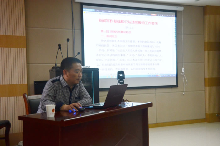 陆编辑授课为期一个半小时,讲授了新闻、消息、通讯等体裁形式的构思、立意、命题、表达、结构等方面基础知识,内容全面,信息量大。他还结合《楚天法治》、《法治咸宁》及《平安咸宁》等平台特点及对稿件的不同要求,就法院宣传工作、法治新闻写作等进行专题交流。徐记者结合自身采编经验,通过实例举证、现场问答等形式,营造了轻松活泼的学习氛围,避免空洞说教,力求现学现用。